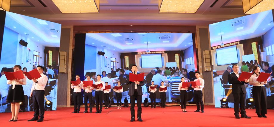 熱熱鬧鬧的鼓舞旗舞拉開了晚會的序幕,晚會共分為三個篇章,首先進入“同心,攜手未來”企業文化發布會環節,沈董、王總與總監級及以上領導上臺揭曉文化日,9.20成為mk体育-MKsports官网人的專屬文化節日。