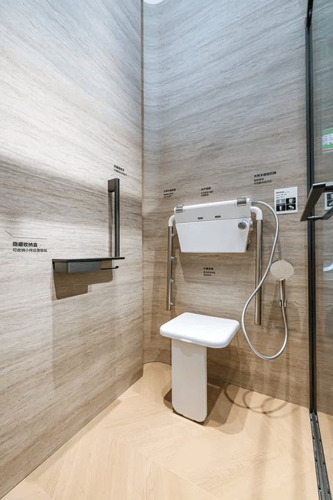 ??適老好房子展區(qū)展示的電動升降浴室柜支持自由調(diào)節(jié)高度,可實現(xiàn)臺盆的升降,適配不同身形長者,無論是站立還是坐著洗漱,都能找到zui舒適的角度。智能健康護理一體機將智能馬桶與智能護理相融合,搭載自研自創(chuàng)醫(yī)療級算法模塊,通過AI數(shù)智科技,在如廁過程中就能進行14項尿檢健康指標(biāo),精準(zhǔn)生成檢測報告與歷史數(shù)據(jù)分析,幫助用戶實現(xiàn)疾病早篩與日常健康檢測管理??叼B(yǎng)淋浴器可站可坐,有效避免老年人沐浴時久站眩暈、滑倒跌傷,兩側(cè)霧化噴淋臂360°噴淋,帶來包裹式淋雨體驗,還支持三檔定位、恒溫出水,洗浴過程舒適又安全。